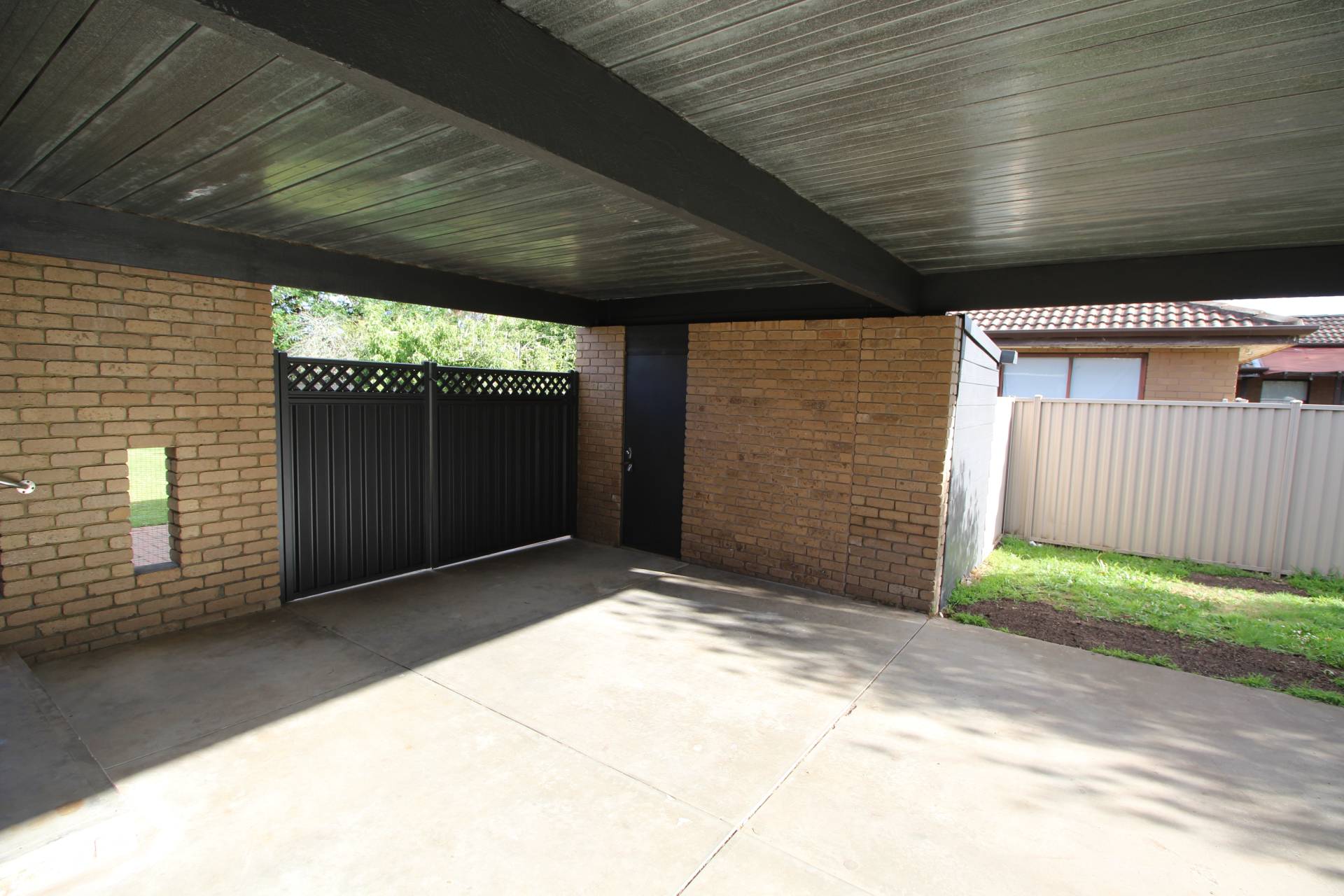 The large storage shed off double carport with double gates into large enclosed rear yard with garden shed completes a very neat property.