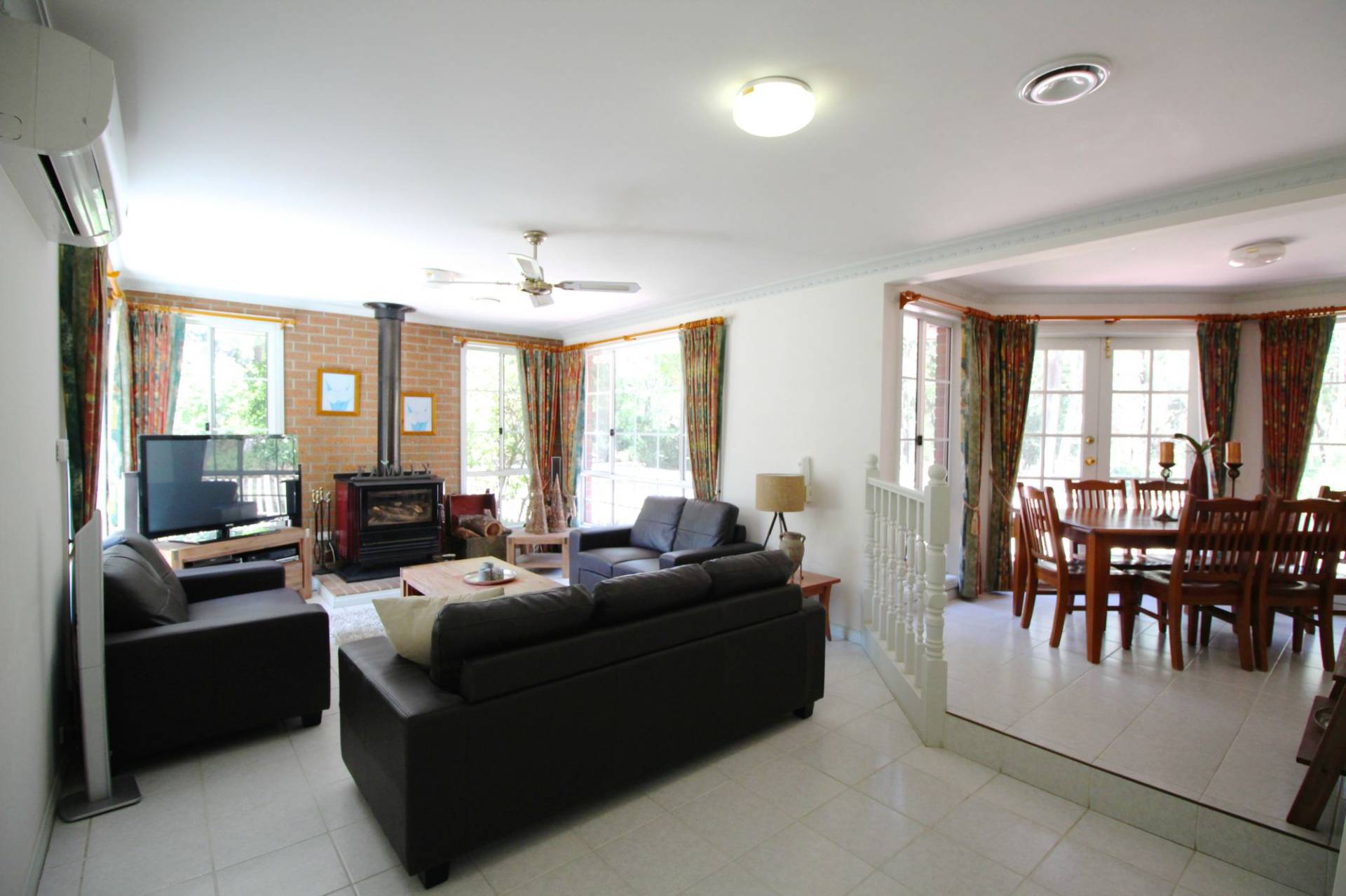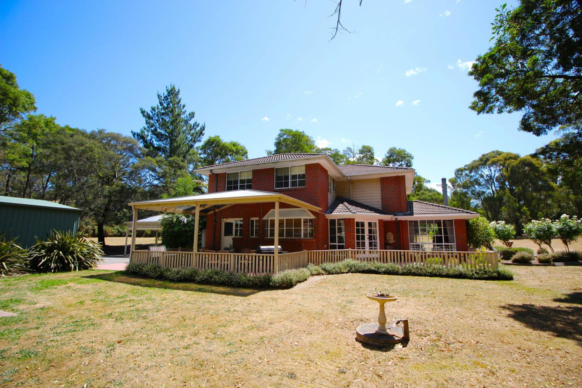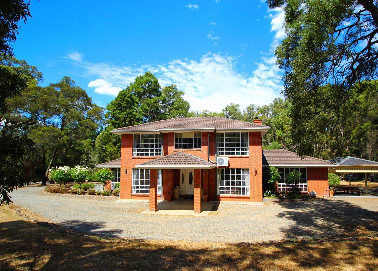 Situated in lovely parkland bush setting just 12km from Ballarat city centre and close to Federation University is this spacious family residence. The home offers 3 separate living zones and comprises lounge-dining with an open fire place, gas ducted heating, study, kitchen with SS appliances, informal dining and family room with wood heater, air conditioning, study, rumpus room, 3rd toilet/powder room and laundry. On level one there is a master bedroom with en-suite and 3 additional bedrooms, all with built in robes, air conditioning and a second bathroom. There are 2 Large outside pergola/entertainment areas, 6m × 9m garage and a single carport with plenty of parking on the property. An abundance of natural bird life, a small ornamental dam and bird aviaries compliment this tranquil property.