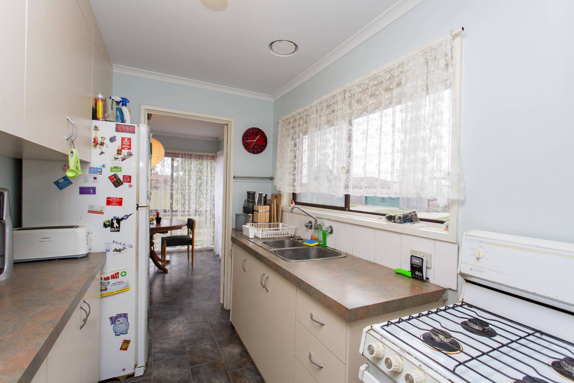 This solid brick veneer home offers living room with a gas heater, galley style kitchen, separate dining room with gas heater, three bedrooms, bathroom, separate shower room and a European laundry. There is a single carport and a generous back yard.