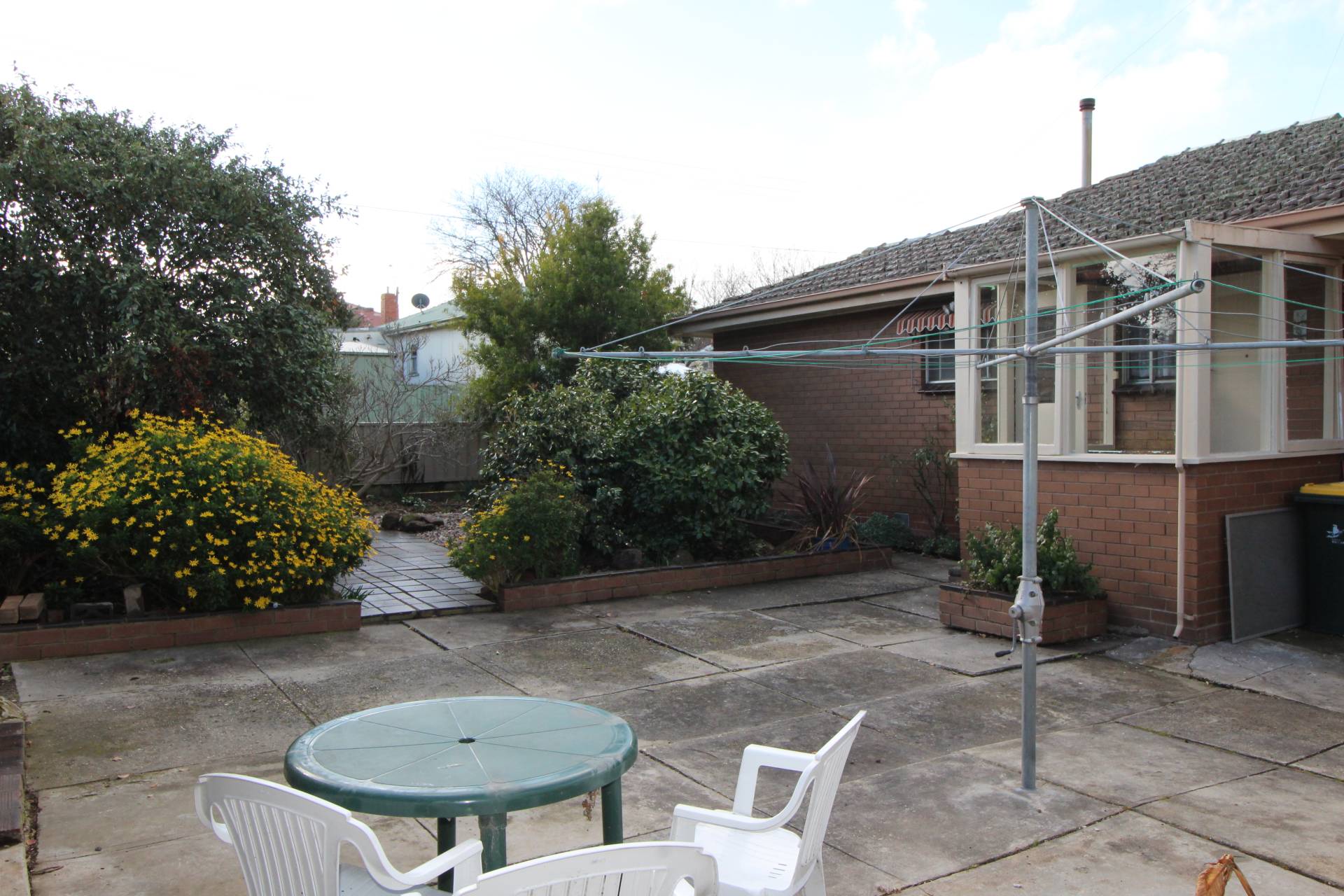 Set on a corner block with lovely gardens this 3 bedroom home has built in robes in all rooms, spacious living area with built in cupboards and gas heater.  The kitchen/dining has gas upright oven, a stylish renovated bathroom with bath and shower and there is a separate toilet.