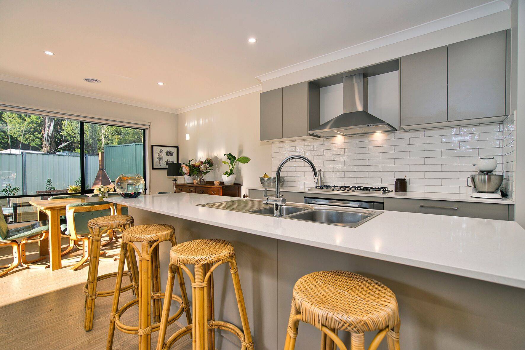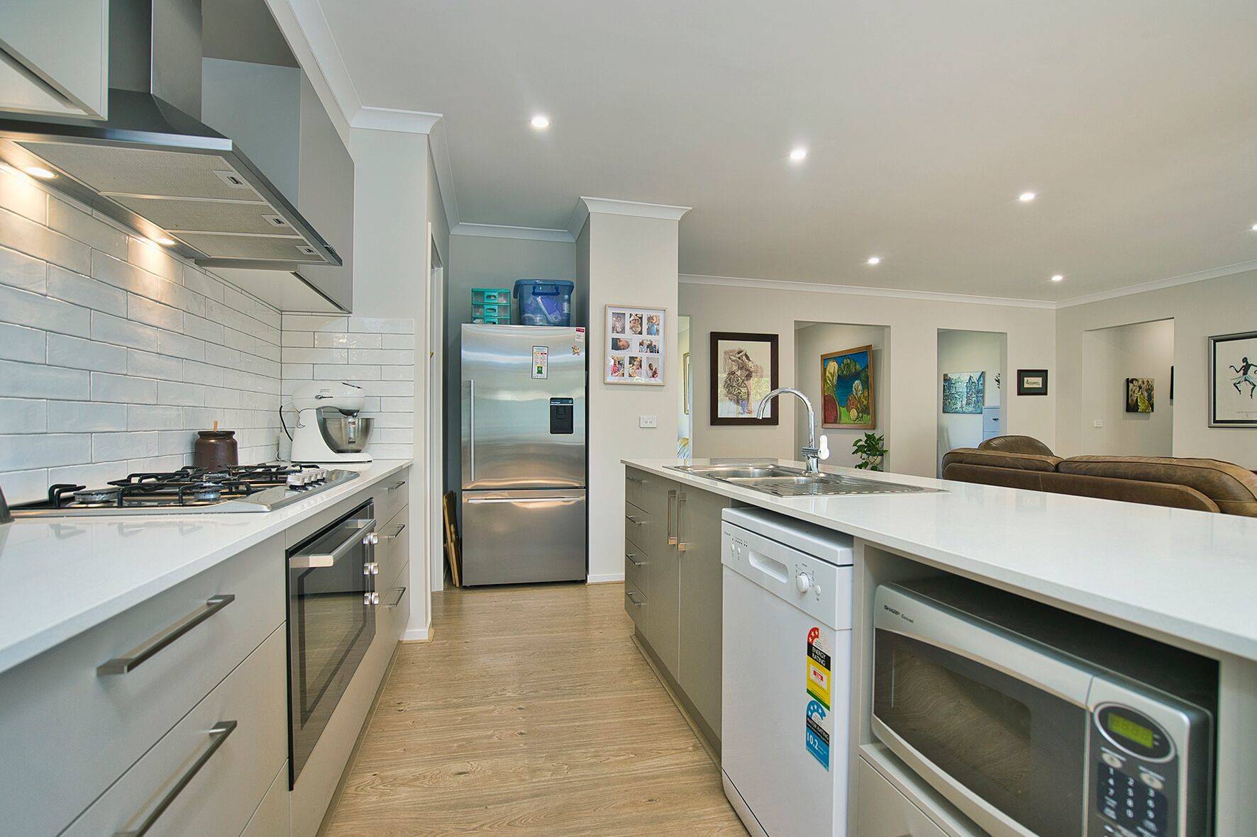 The kitchen has stone bench tops, dishwasher, large walk in pantry, gas cook top and electric oven.
